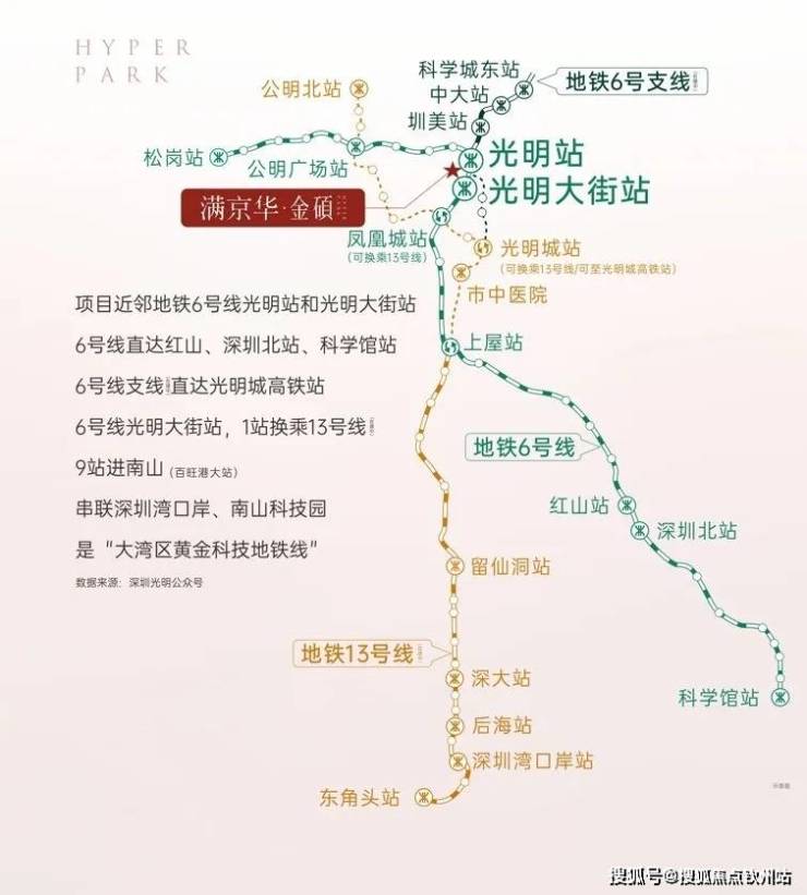 3地铁:邻6号线光明站/光明大街站、6号线支线 (在建中)、13号线 (在建中)