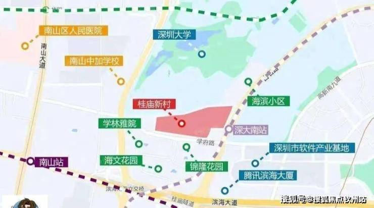 桂庙新村城市更新单元位于南山区粤海街道白石路与学府路交叉口西北侧,东临白石路,西近南海大道,南临学府路,北面与深圳大学毗邻。周边集聚了腾讯滨海大厦、软件产业基地等写字楼,地理位置优越。