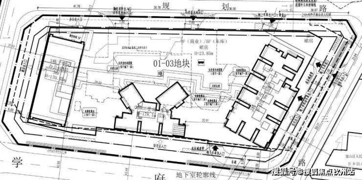 03地块,规划总建面约17.6万㎡,容积率11.44。规划住宅建面约7.65万㎡,商业建面约1.5万㎡,办公面积约0.6万㎡,酒店约1.9万㎡。