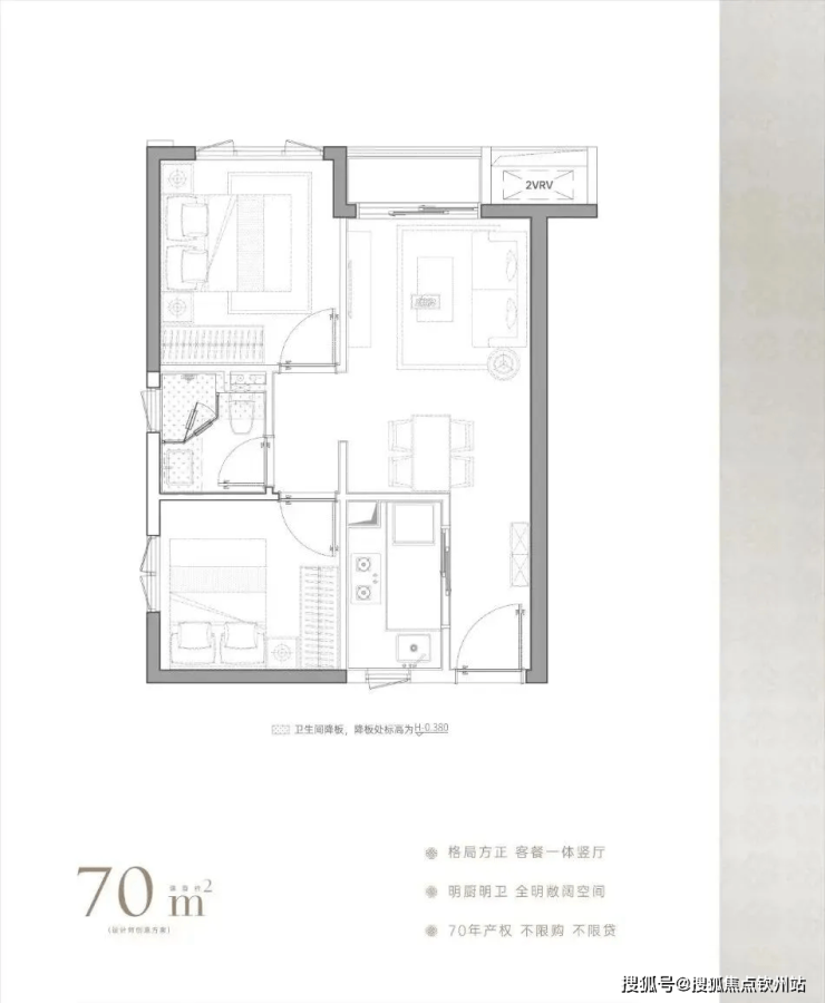 (3)70平米两房:折后总价344万左右;【折后单价4.9万,售罄】
