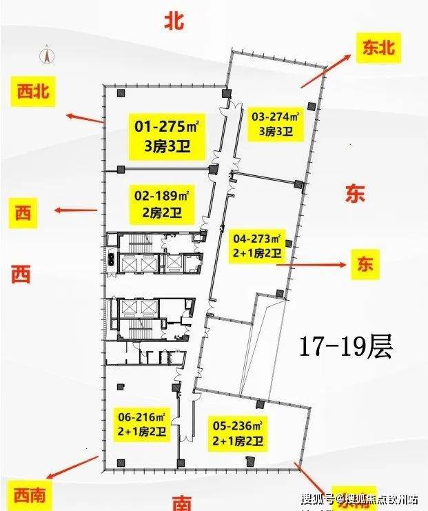 偏核心筒设计约70%使用率电梯厅自然采光 舒适候梯