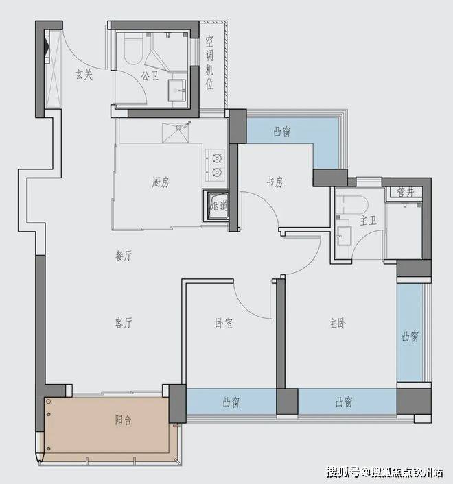 ✔️主卧双飘窗,一侧飘窗加软垫打舒适阅读区