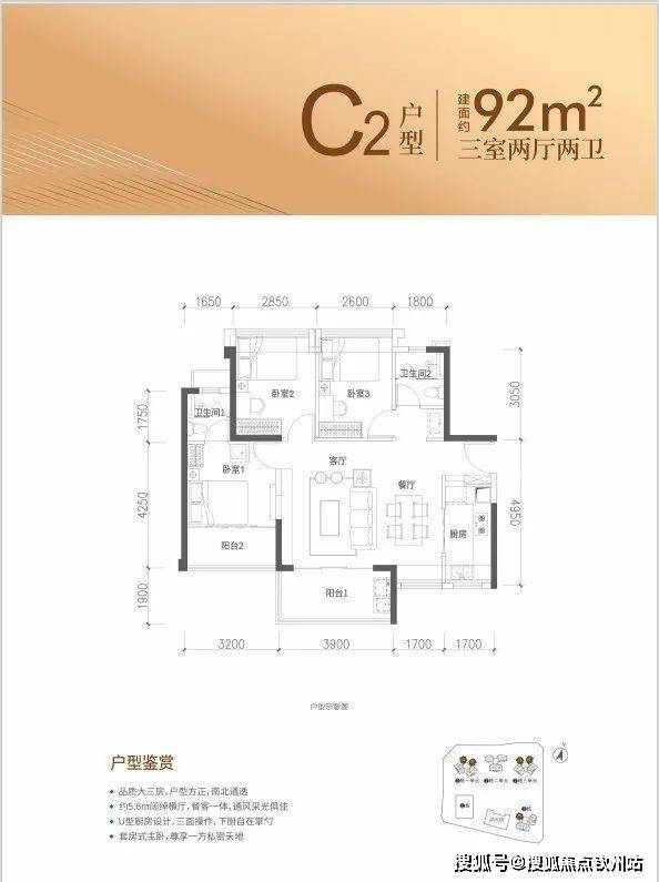 92㎡户型:3房2厅2卫