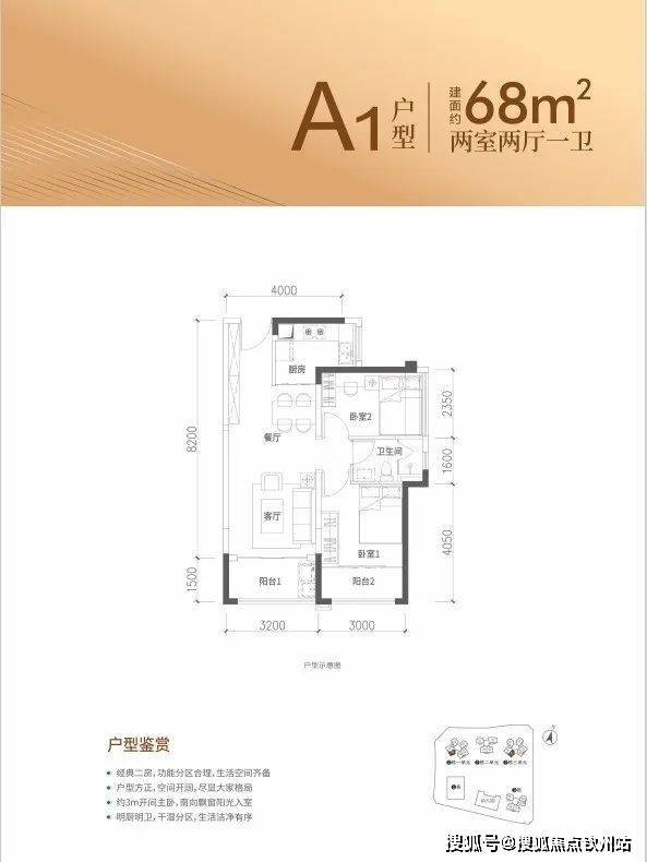 71㎡户型:2房2厅1格局:竖厅设计,客厅3.2米开间,8.2米进深。