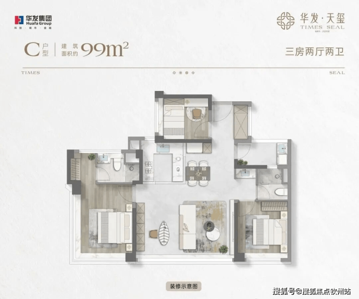 户型面积:建筑面积约99/114㎡ (新规产品,相当于传统建筑面积约120-150㎡户型)