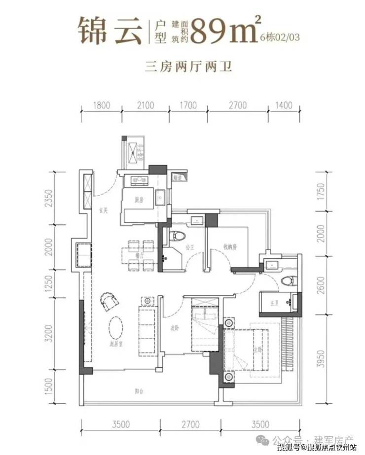 首推6栋产品有88-89㎡ 3房2厅2卫,106-127㎡ 4房2厅2卫户型,总高16层,2梯6户设计,全朝南向