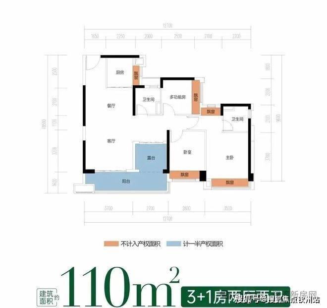 主卧双飘窗+次卧等面宽飘窗,全赠送高拓空间