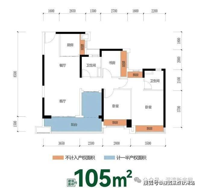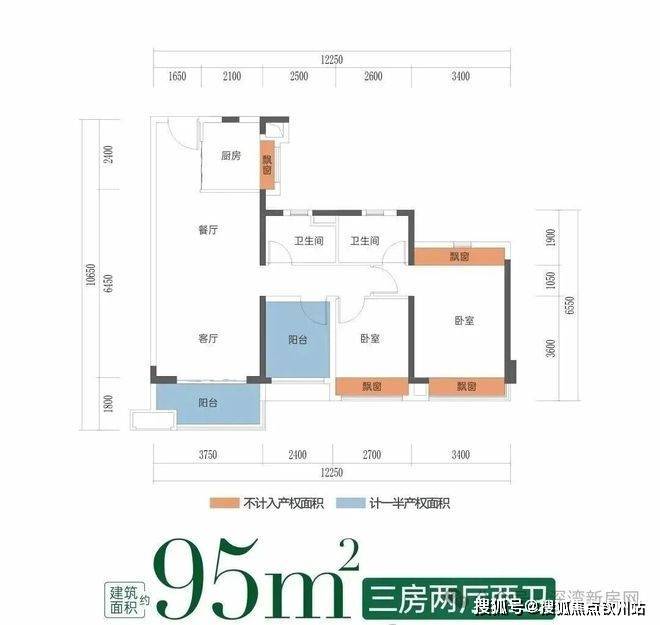 建筑面积约95㎡三房 | 小面积王炸户型,全盘仅售62套!