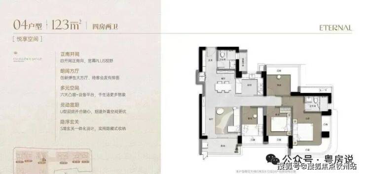 新规产品,销售使用率90%+,近1:1梯户比,大户型双电梯独立电梯厅入户,北区2梯2户,双电梯独立电梯厅入户,南区3梯4户。