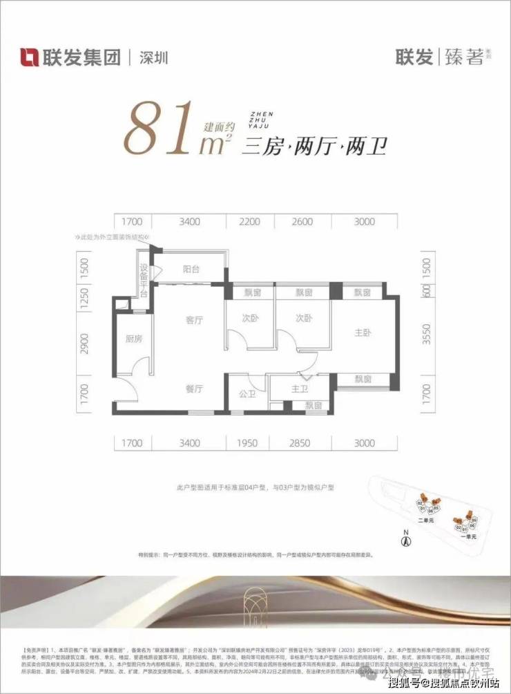 81㎡的3房2厅2卫,设计的是竖厅南北通透格局,客厅3.4米开间,3个卧室分别是3米/2.6米/2.2米的宽度,L型厨房,得房率:94.35%(包含赠送),阳台西北或东北朝向。