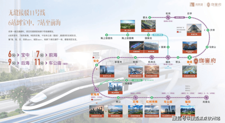 地铁:无缝连接11号线塘尾站,6站到宝中、7站到前海、9站到后海、11站到车公庙,便捷到达南山、福田