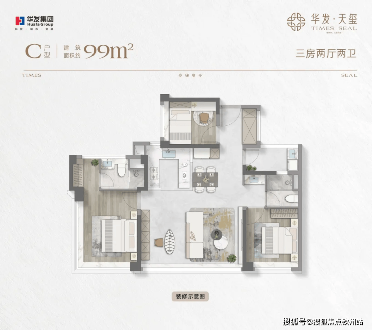 户型面积:建筑面积约99/114㎡ (新规产品,相当于传统建筑面积约120-150㎡户型)
