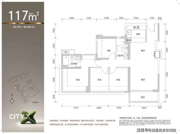 建面约117㎡四房两卫:作为此次首推的“尊享之作”,仅52席的稀缺性不言而喻。约4米开间的大气竖厅设计,以及四个主要生活空间朝南的极致布局,带来了极致的采光、通风与视野享受,满足了高净值家庭对居住品质的追求。
