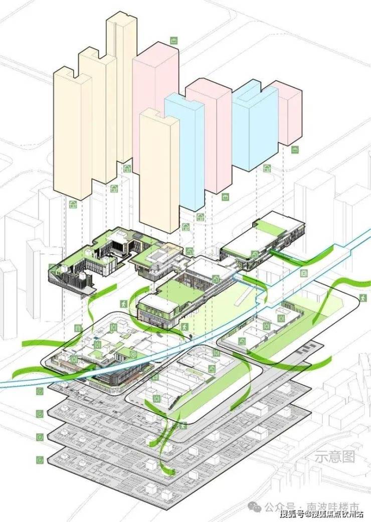 垂直交通场景:多首层设计,空中连板、无风雨连廊等,形成住宅、商业、办公与地面公交、空中地铁的接驳体系。