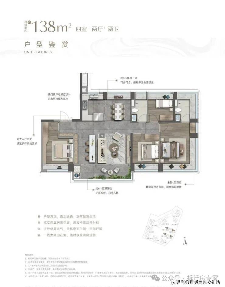 本次即将加推的4栋是楼王,户型138平四房两卫,2梯2户,均为西南朝向,可以看大南山景观,视野不错。
