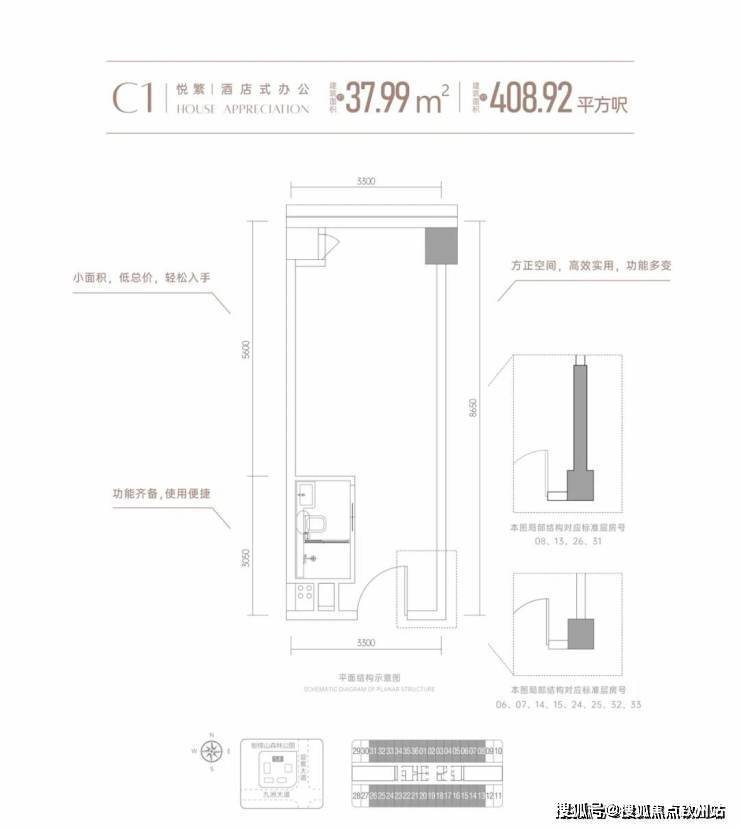 首推5栋建筑面积约38-39㎡高定资产,约3.9米层高小面积高实用,城芯优质资产。