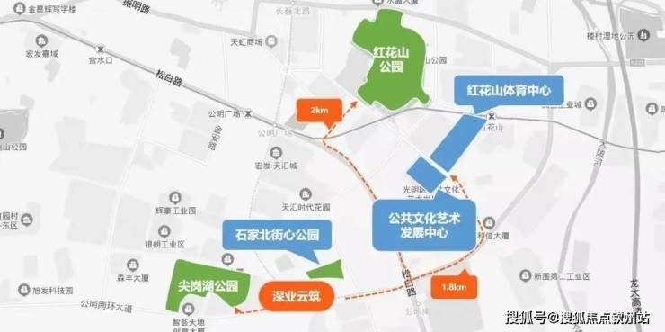 休闲配套:红花山公园、陈仙姑祠、公明广场