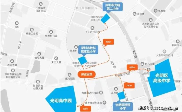 项目西南面规划光明高中城。光明高中城投资18.4亿,用地面积17.9公顷,总建筑面积230000㎡。办学规模126个班。预计于2022年建成,秋季将开始入学招生。