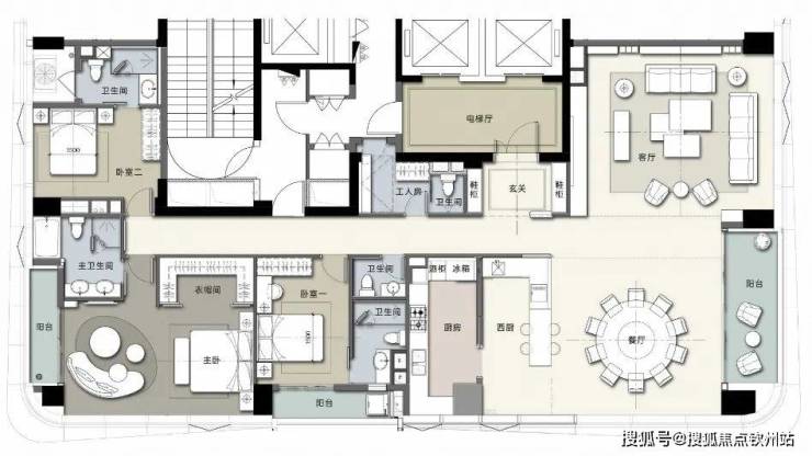 太子湾·鲸域作为公寓产品,具备了十分完善的居住功能,阔绰全功能主卧套间+父母套间(客人套间)+小孩套间+工人房,家族大宅的尊崇顶配,使产品的豪宅属性提高了一个档次。