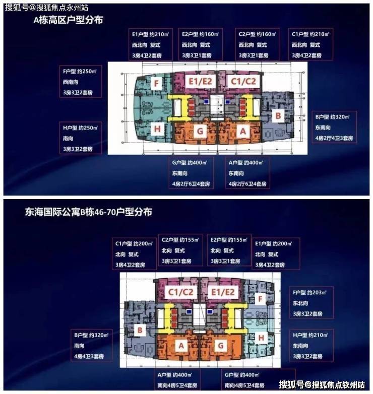 东海国际公寓建面约19万㎡,A、B两栋,户型涵盖75m²一房至800m²顶复,主力户型为140-500m²,户型面积跨度很大大,有30多个户型。目前在售主力户型为77/122/320/365㎡。(深圳东海国际公寓售楼处电话:400-045-8086)