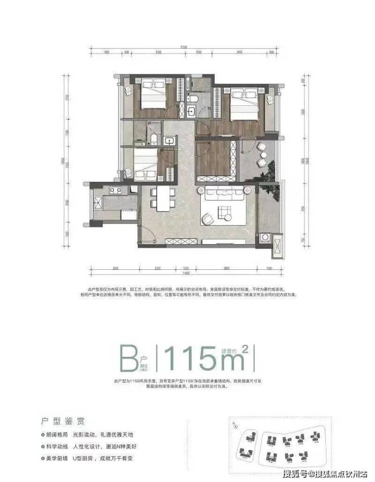 115㎡的4房2厅2卫户型,总价在530万左右;