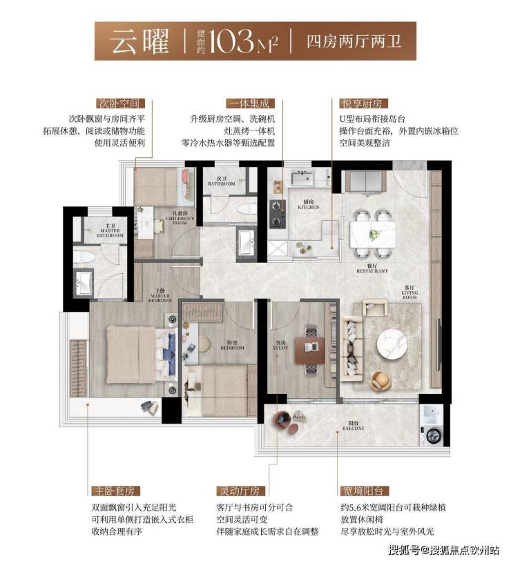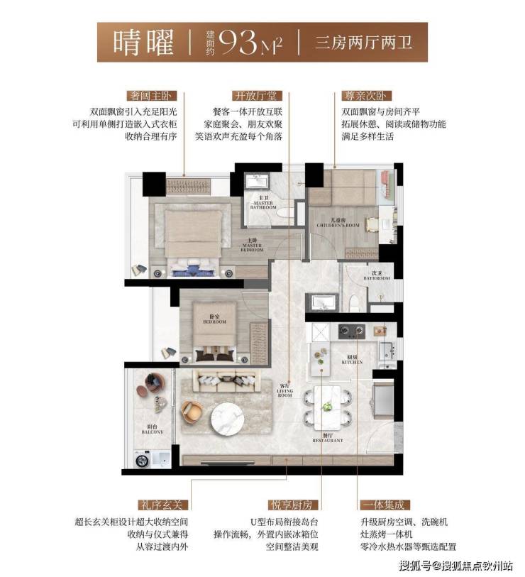 •颜值臻配:升级配置超大玄关柜、内嵌冰箱、灶蒸烤一体机、零冷水热水器、中央空调及厨房空调、轻松抽橱柜、双向流新风,以一体集成的精工美学,实现功能与颜值的并存。