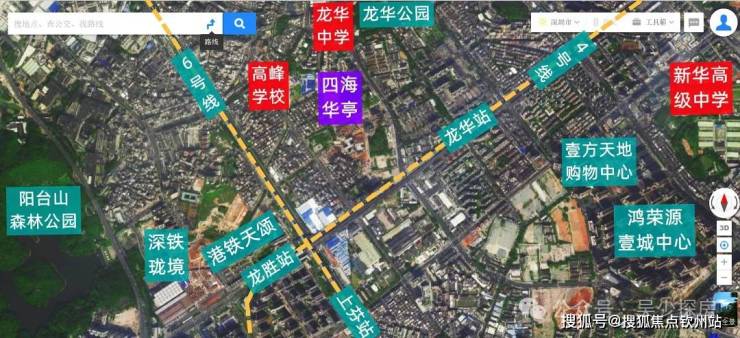 四海华亭,位于龙华区大浪街道龙胜路与春华路交汇处东侧,由华侨城集团开发,项目毗邻高峰学校,周边多为城中村,城市面貌稍差,不过基本都已经划入城市更新单元,东南侧约1.2公里是龙华最大的壹方天地购物中心,4号地铁线“龙华站”,“龙胜站”距离都在800米范围内,6号地铁线“上芬站”距离约1.4公里。