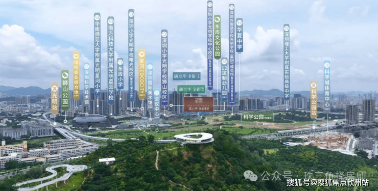 满京华金硕臻府,位于深圳光明区光明科学城“一心两区”的核心区域,紧邻占地208万平方米的科学公园,属于光明规划中“最宜居、居住板块最大”的片区。项目北侧与科学公园仅一街之隔,东、南侧为深圳小学光明学校狮山校区及初中校区,周边市政配套规划密集,如深圳科技馆新馆、国际美术馆等均在建设中,预计2026年前全面落成。
