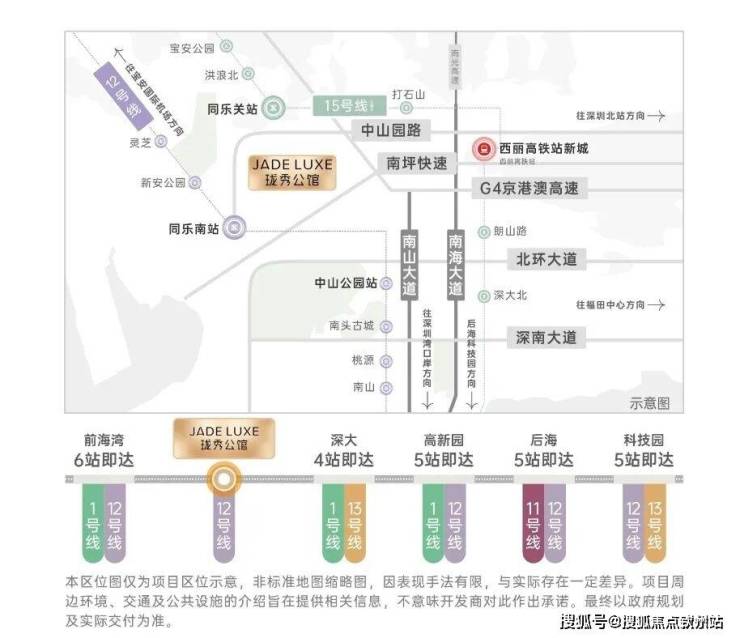 交通配套:项目紧邻地铁12号线同乐南站(约600米),1站可达中山公园,4站直达科技园,5站可达高新园。在建的15号线同乐关站(预计2028年12月开通)距离约1公里,将串联宝中、前海、深圳湾、西丽等地,被称为深圳"一环线"上的重要一环。规划中的24号线开通后4站可达高新园。