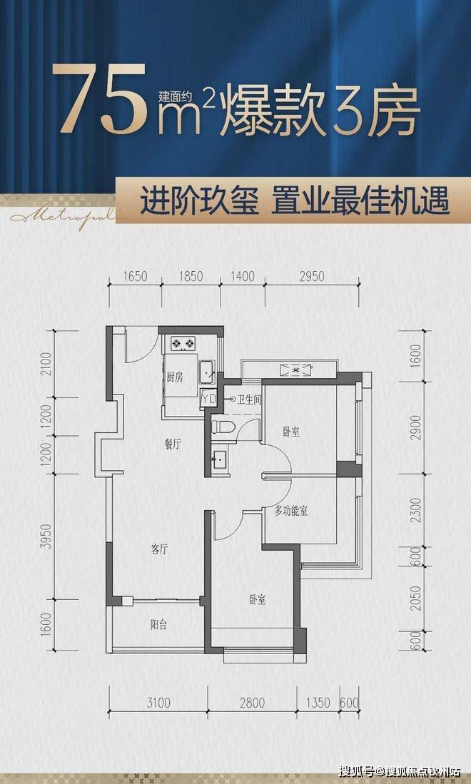 【12栋——首开景观楼王,3梯5户,四房首推劲销9成,居住舒适度超高】建面约75-97㎡全能三房【新品户型鉴赏】