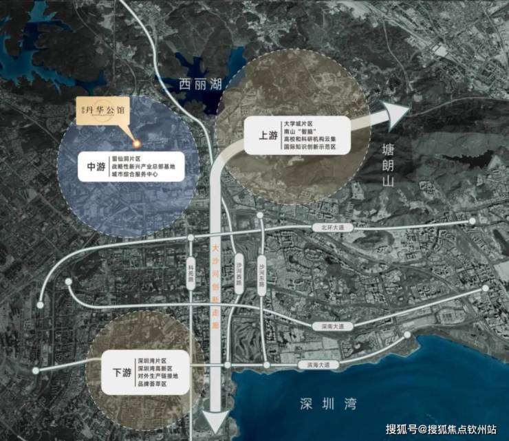 双总部基地——留仙洞和科技园核心区,世界500强总部环伺(大疆创新、乐普医疗、天珑移动等),未来片区将有60万高端就业人口,约1500家企业入驻。
