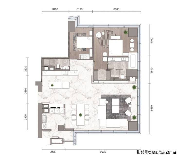185㎡户型,以摩登风格为基调,在配色上运用大量的黑白灰关系做层次递进,塑造承载当代都市生活的自由空间。