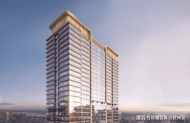 塔楼立面采用竖向线条主边框,营造秩序感与挺拔感,横向线条的飘板, 创造出了独特的水平延伸感,勾勒同频国际的时代审美。采用无山墙设计,以景观资源最大化为导向,所有外墙面能开尽开,实现高窗墙比。塔冠呈现极富生命力的曲线,赋予建筑张力,打造金色塔冠美学。