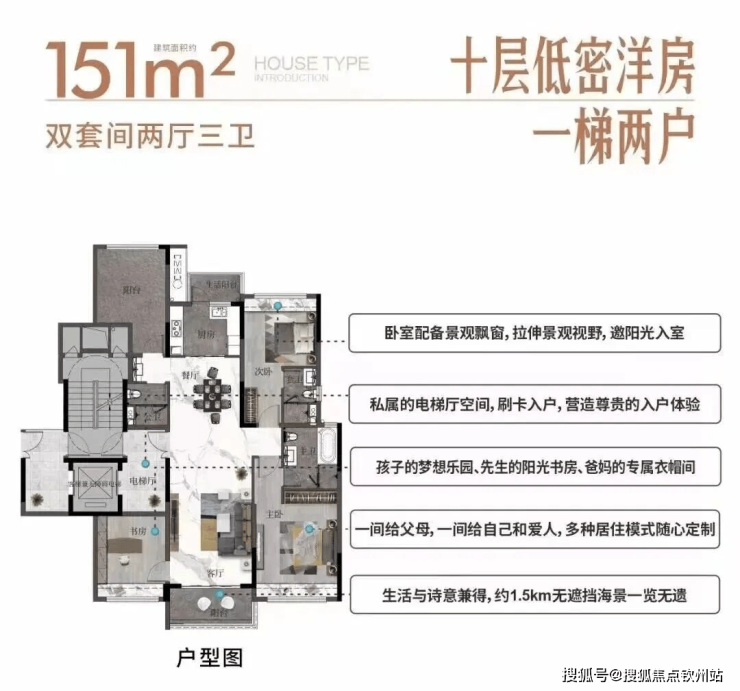151㎡四房两厅三卫(洋房),奢享墅级双景观阳台