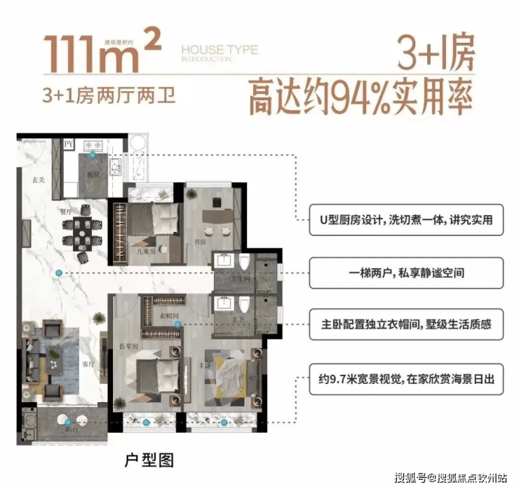 建面约110㎡海景大四房,270°视野,将大海的浩渺、中山公园的诗意,无限揽入室内,在家即是满分度假感。