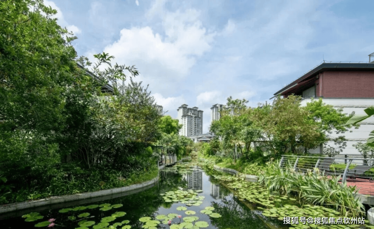 整座社区如同一座5A级森林景区,目之所及有金桂、大王椰子、蒲桃、水石榕等全冠名贵树木,蜿蜒水系静静流淌,置身其中,静谧又不失活力与生机。
