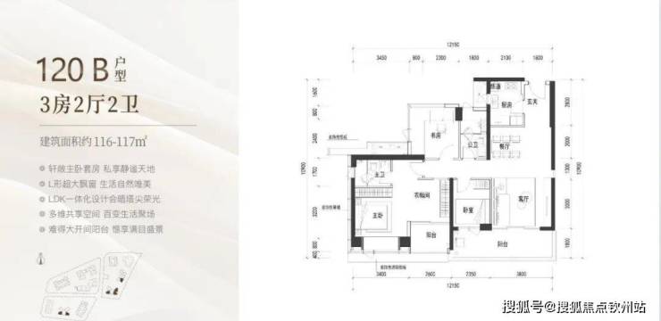(2)120㎡3+1房2卫:主卧套房超30㎡,可灵活改造空间,适合改善型需求。