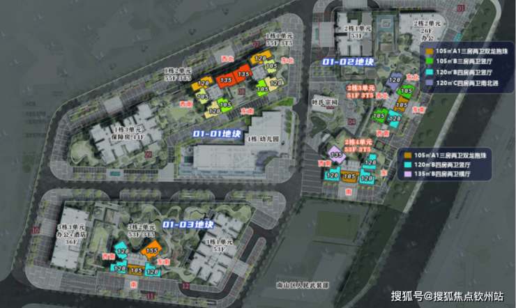 项目是超50W方的地标综合体,分3个地块总共有9栋,这次先推2号地块三、四单元,面积是105-120-140平米新规后的产品;