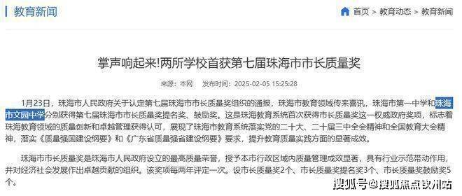 今年2月,文园中学还获得珠海最高质量荣誉--珠海市市长质量奖,这是珠海教育系统首次获得该荣誉,说明其教学质量获得官方盖章认证!