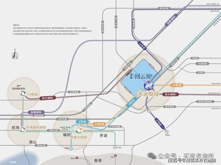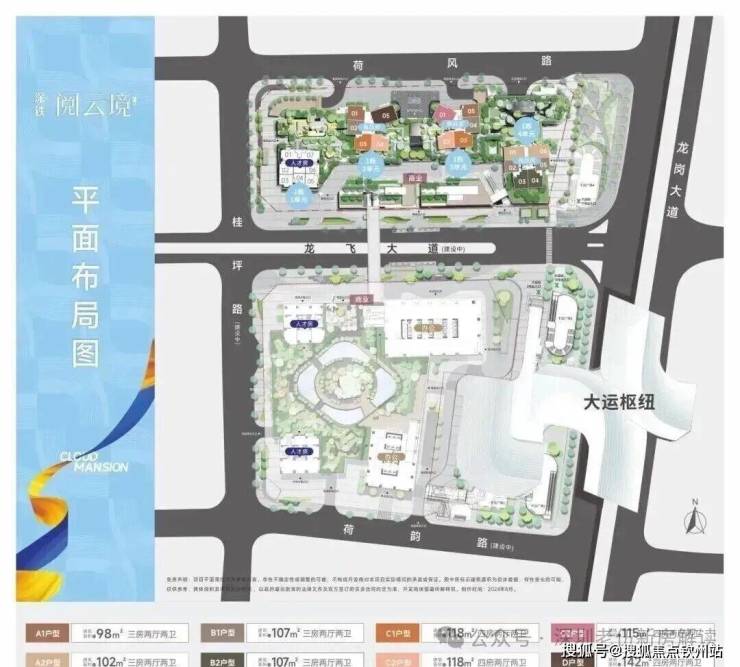 深铁阅云境广场,作为大运交通枢纽上盖物业,总占地面积约5.66万㎡,总建筑面积约51万㎡,以龙飞大道为界共分南北2期开发,有空中连廊相连,北区建设住宅小区,南区兼顾了公共性和便捷性,主要规划超高层办公写字楼和大型商业mall。