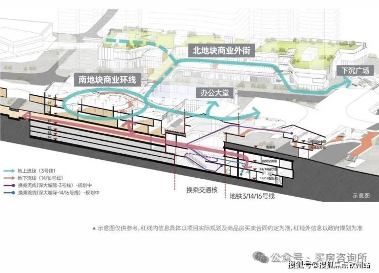 二是东部唯一的四线地铁交汇枢纽,地铁3号、14号、16号、33号线(深大城际,规划中)四线在大运站交汇,实现站内换乘。后期也会引进与深铁商业直连