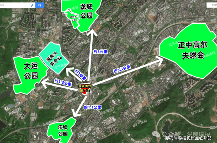 文娱公园配套:在深铁阅云境广场距离1公里处有深圳大运中心,内设有体育馆,体育场,游泳馆,足球场,400米环形跑道,每年有多场明星演唱会就是在大运体育馆举行;在周边1.3公里范围内有大运公园,乐城公园等,约3公里范围有龙城活力谷公园,龙城公园等大型公园配套,非常适合闲时散步爬山,亲子时光,在约3.3公里处还有正中高尔夫球会,拥有36洞锦标赛级球场,不定期举行多项赛事活动。