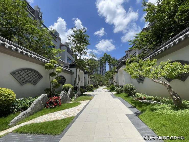 ✔一期社区园林分为横(东西向)纵(南北向)双景观轴设计,横向景观轴面积达2万㎡,将高层和别墅区进行分隔,保证互相的私密性,纵向景观轴贯穿别墅区,彰显了社区的庄重和仪式感。