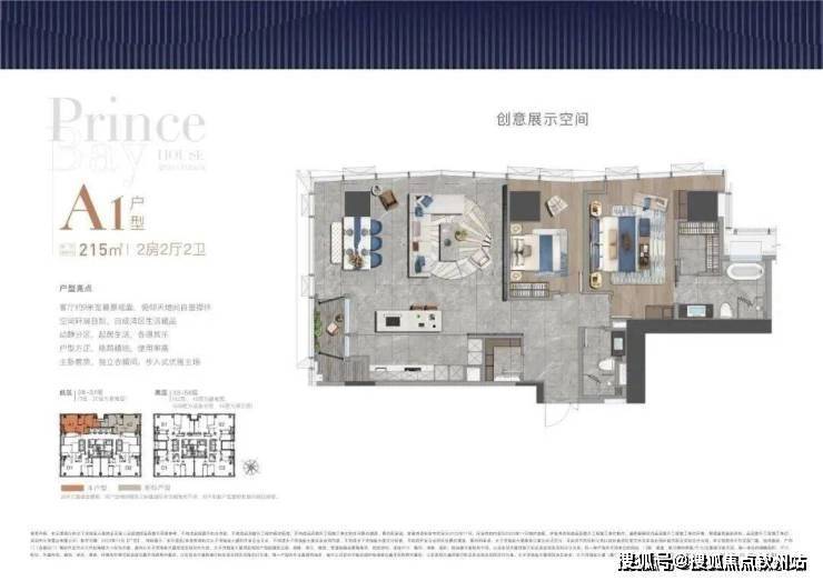 大尺度空间 纵享环幕视野大平面大尺度定位,层高约3.6米,横厅设计确保最大化观景面全户型纵享环幕视野。项目打造主力建面约215-415㎡纯粹品质公寓共191席,顶层为建面约1270㎡公寓产品。