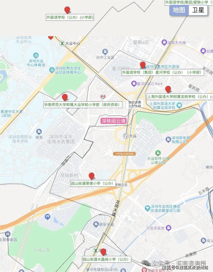 ✅教育:学区划入华南师范大学附属龙岗大运学校(九年制公办),周边还有厚德小学、上海外国语大学龙岗学校等,南区旁规划 72 班九年制公办学校,全龄教育资源环伺