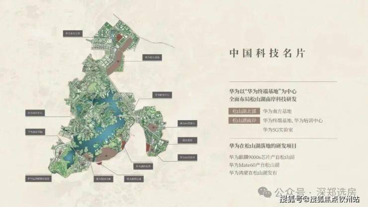 华为以“终端基地”为核心,布局松山湖南岸:华为欧洲小镇、华为培训中心、华为5G实验室、华为研发中心、华为运动健康实验室