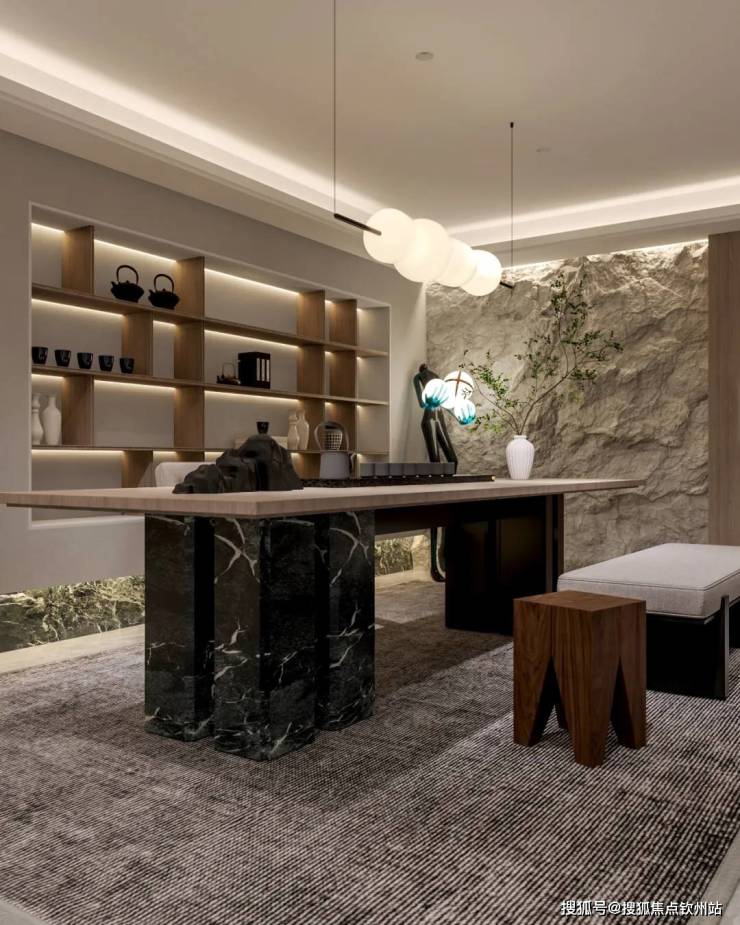 地下室两层充分利用,将阳光引入地下,绿意盎然,采光通透,整个空间感以及仪式感十足。B1B2层采用挑空客厅的设计,增加室内面积的同时,综合了更多休闲区功能。