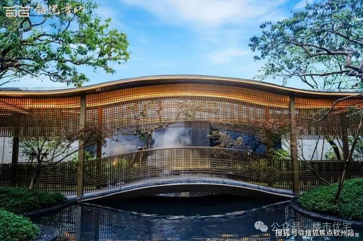 园林设计以《千里江山图》为灵感蓝本,巧妙融合岭南四大名园精髓,复刻佛山梁园"半边亭"。通过"漫卷云章"、"金水澜庭"、"琉璃水院"三进式景观轴线,呈现移步换景的东方美学。