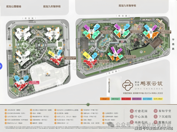 项目建面约31万方深圳城央美好生活领地,无公租房、无保障房、无人才房。采用围合式布局,以岭南建筑美学理念,打造岭南东方诗意园林。项目分32层高的2梯5户以及3梯6户,47层高是3梯6户,共10栋高层住宅组成2100户