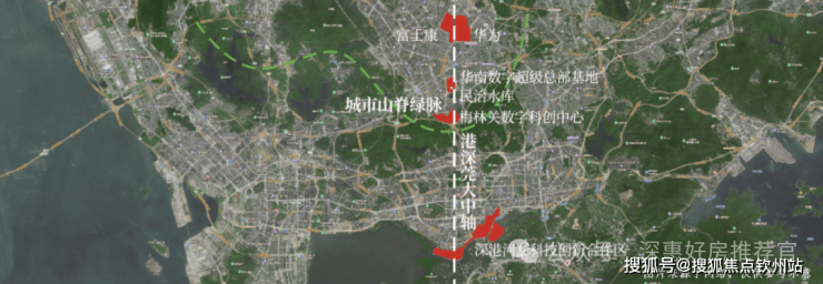 港深科技中轴之上,向南连接河套深港科技创新合作区、福田CBD,向北连接坂雪岗科技城,享有龙华福田双中心配套服务。